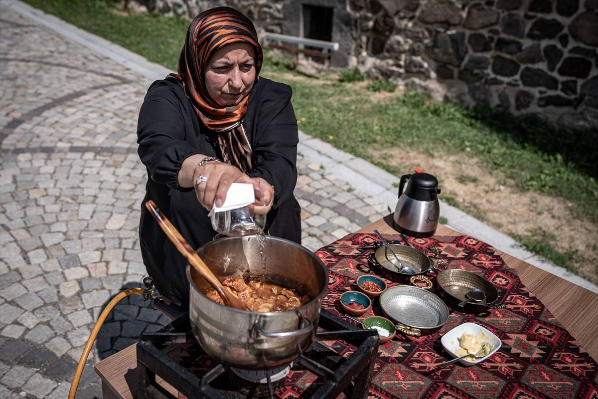Anadolu Ajansı’nın Türkiye’nin lezzetlerini tanıtmak amacıyla Karatay Belediyesi’nin katkılarıyla hazırladığı Memleket Sofrası Projesi kapsamında, son zamanlarda gastronomisiyle adından söz ettiren Erzurum mutfağının geleneksel yemeklerinden aşmalı yahninin yapımı anlatıldı.