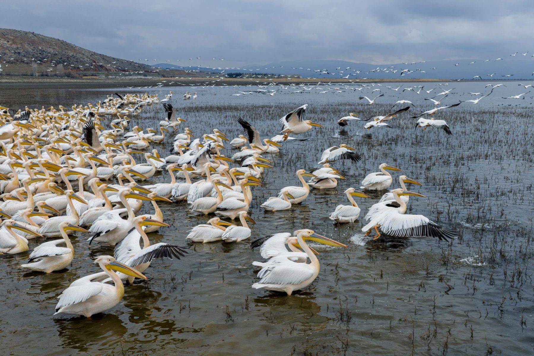 Geçtiğimiz yıl kuraklığın etkisi ile kuruyan Konya’daki Çavuşçu Gölü, bu yıl yeniden su tutmaya başlamasının ardından yeni misafirlerini de ağırlamaya başladı. Kuşların göç yolu üzerindeki önemli duraklardan biri olan göl, görenleri kendilerine hayran bırakan ak pelikanlara ev sahipliği yapıyor.