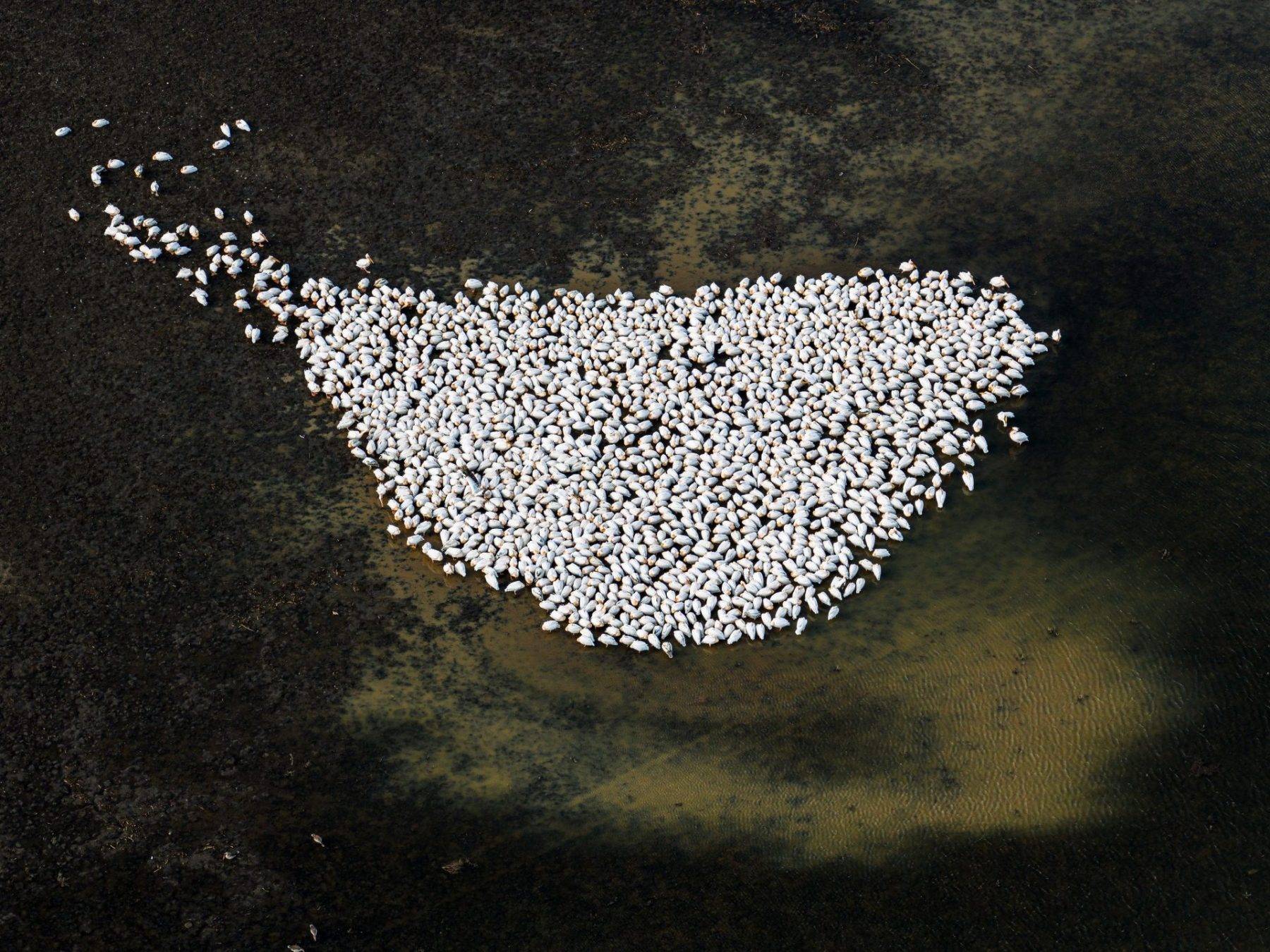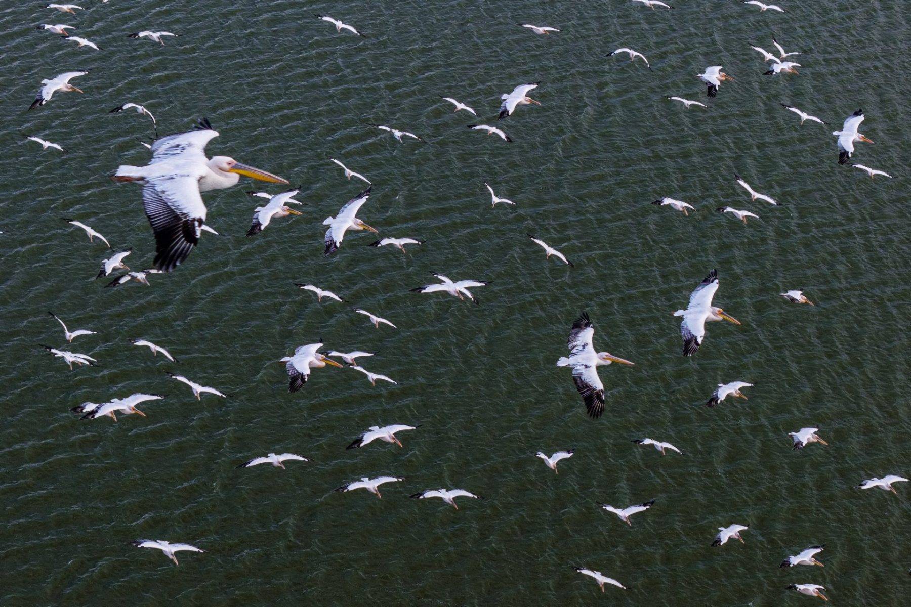 Son olarak ahenkleri ile görenleri kendilerine hayran bırakan ak pelikanlar, göç yolculuklarına devam etmeden önce, gölde beslenip dinlenirken görüntülendi.
