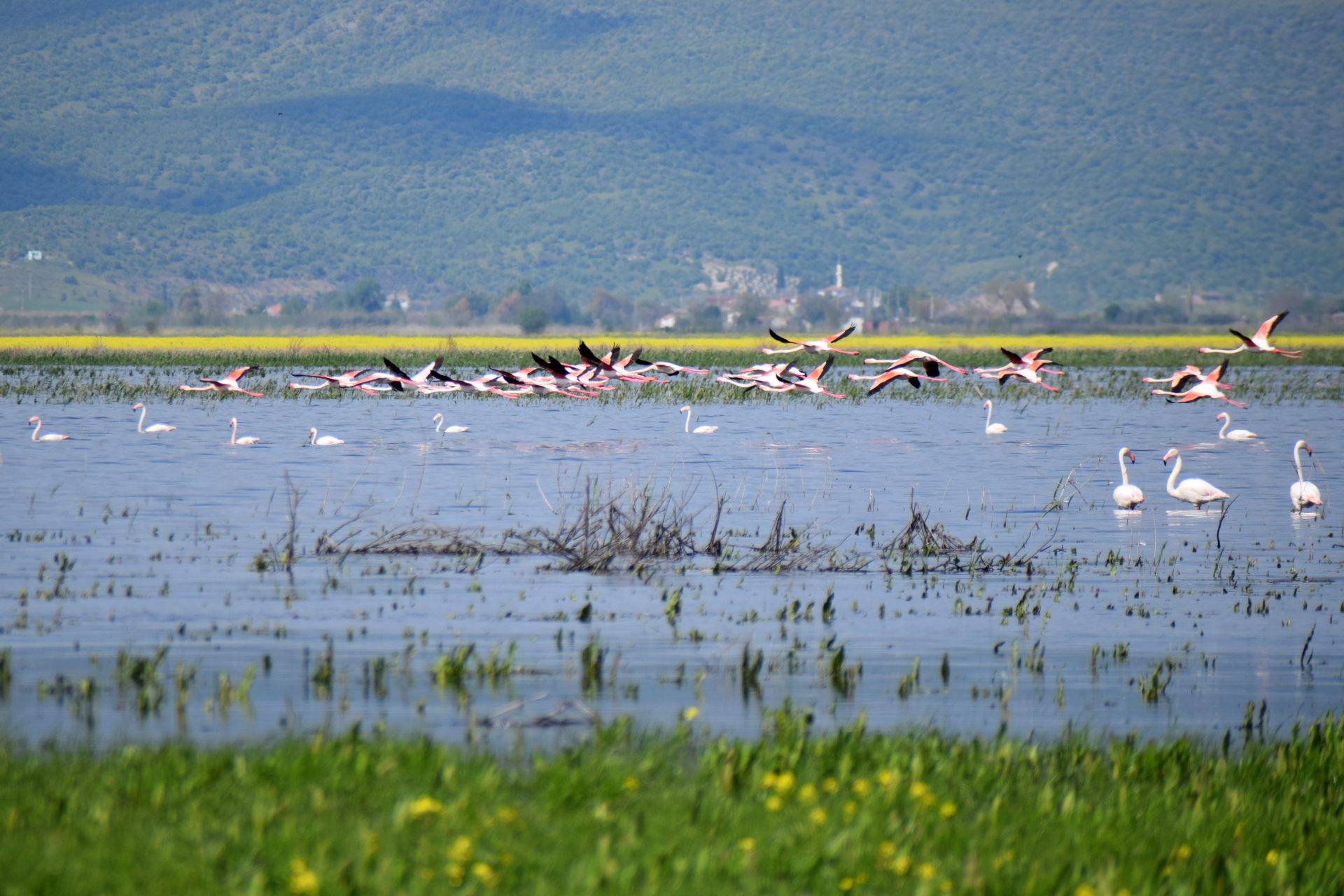 Anadolu’da “allı turna” olarak bilinen flamingolar, karabatak, balıkçıl ve birçok göçmen kuş türü yeniden bölgede görülmeye başladı.