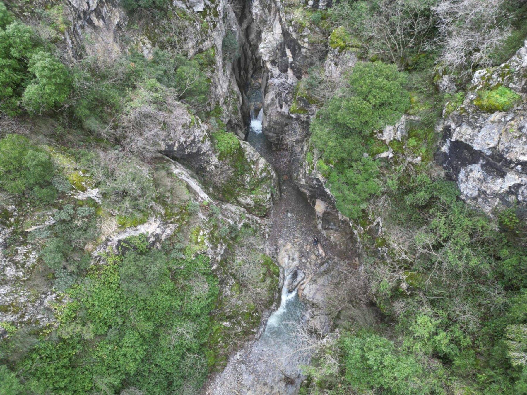 Yeniden akmaya başlayan Saklı Kanyon, dronla görüntülendi.