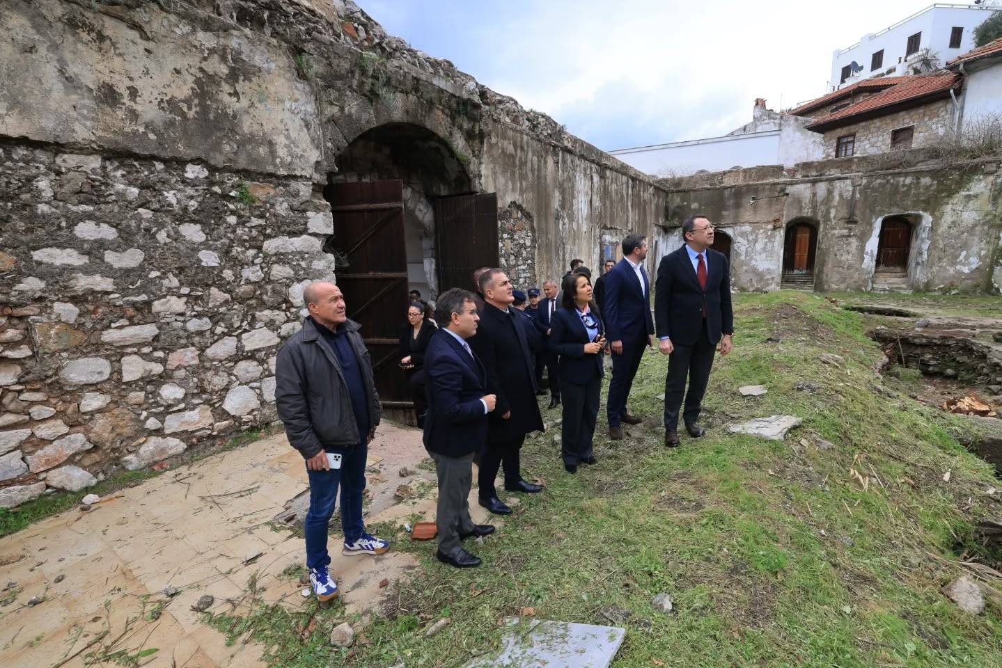 Muğla Valisi İdris Akbıyık, Marmaris’te Hafsa Sultan Kervansarayı’nın restorasyon sürecini inceledi. Kamulaştırma sonrası başlayacak çalışmalarla tarihi yapı kültür turizmine kazandırılacak.