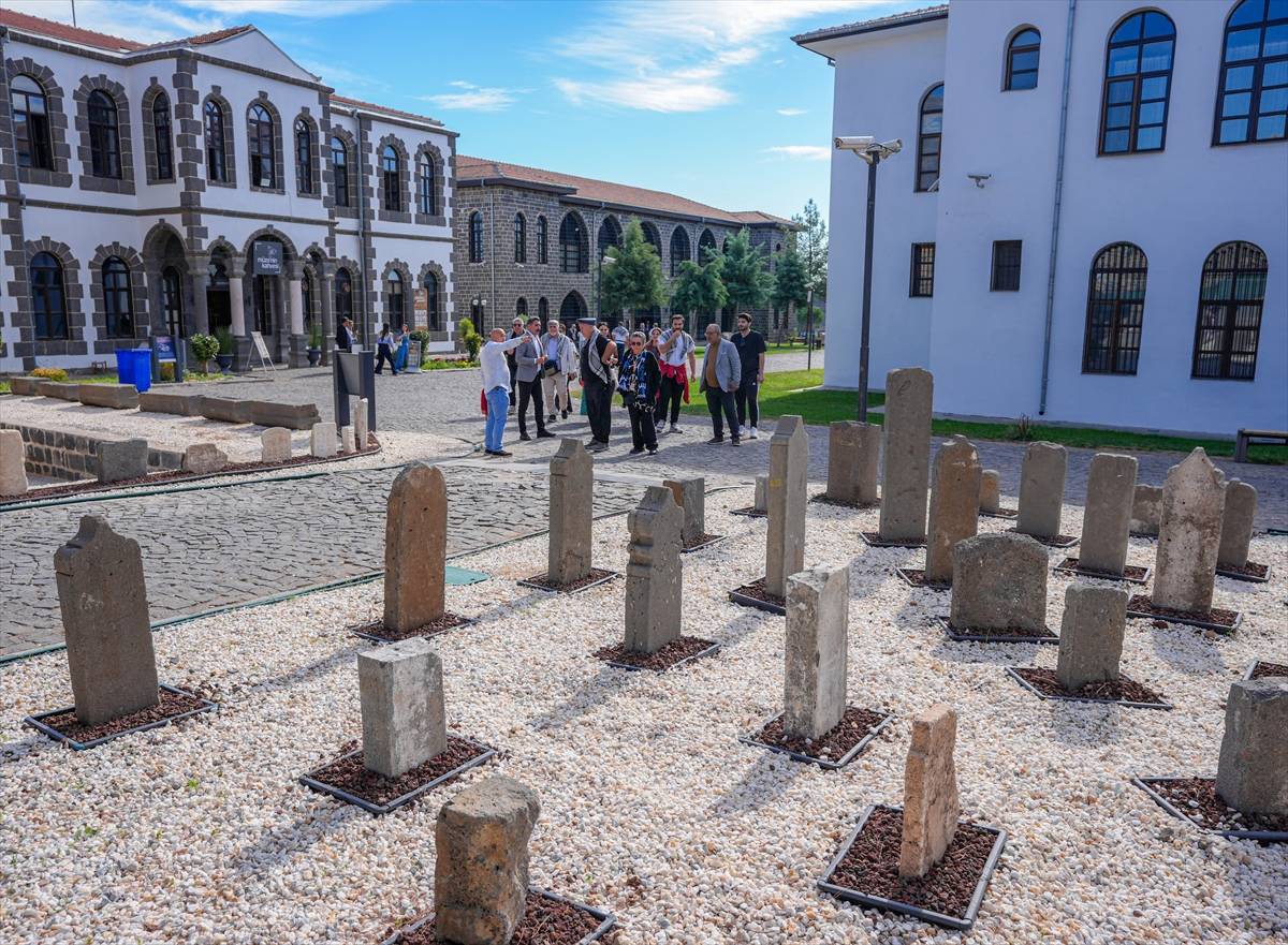 Diyarbakır’daki İçkale Müze Kompleksi’nde açılan “Medeniyetler Mezarlığı” sergisinde, kentte hüküm süren medeniyetler ile farklı inançları yansıtan 250 mezar taşı izlenime sunuldu.
