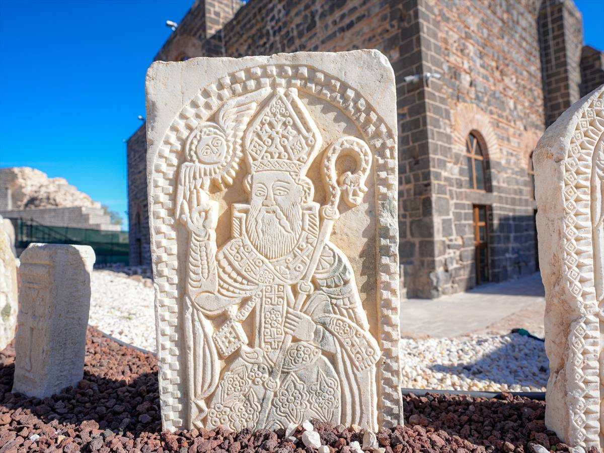 Bu alanda yaklaşık 2 bin yıl öncesine kadar Diyarbakır’da hüküm süren medeniyetlere ait mezar taşlarını sergilediklerini anlatan Gizgilgöl, “Burada toplumsal statü ve farklı meslekleri yansıtan mezar taşlarını gördük. Sergimizin en eski mezar taşı Saint George mezar lahiti. O da 1700 yıllık bir mezar.” dedi.