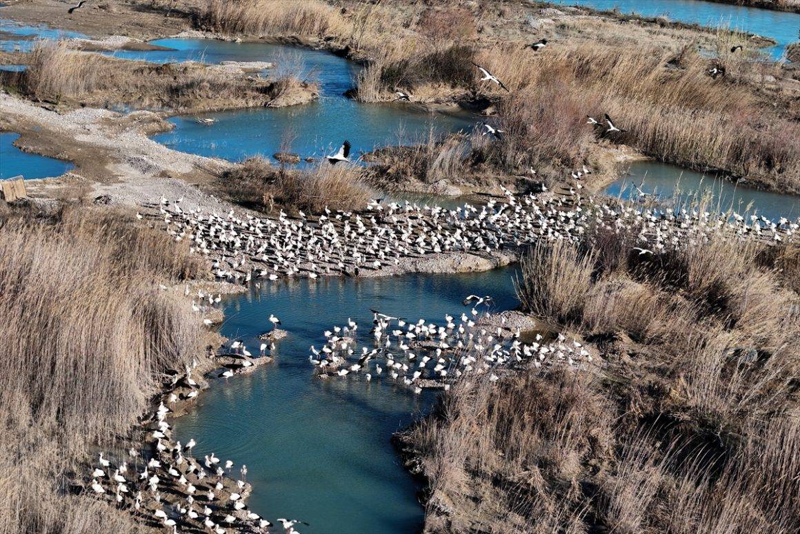 Göçmen kuşların Doğu Akdeniz’deki mola noktalarından Mersin’deki sulak alanlar, havaların ısınmasıyla çok sayıda leylek ve pelikanı ağırlamaya başladı.