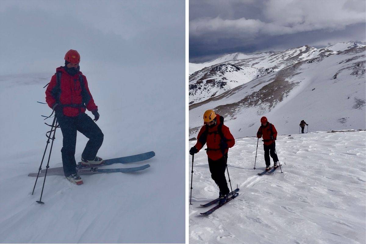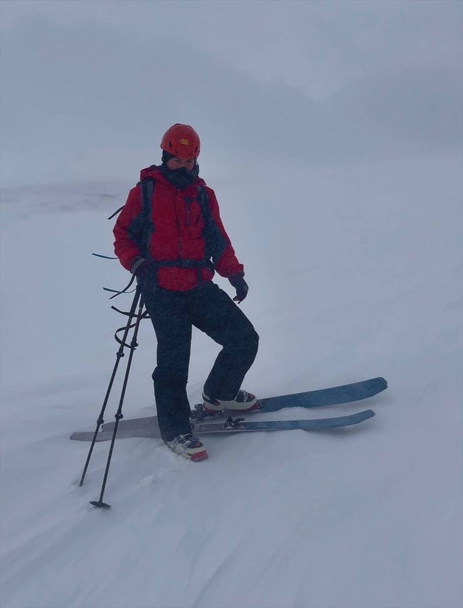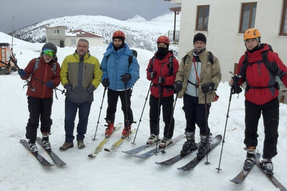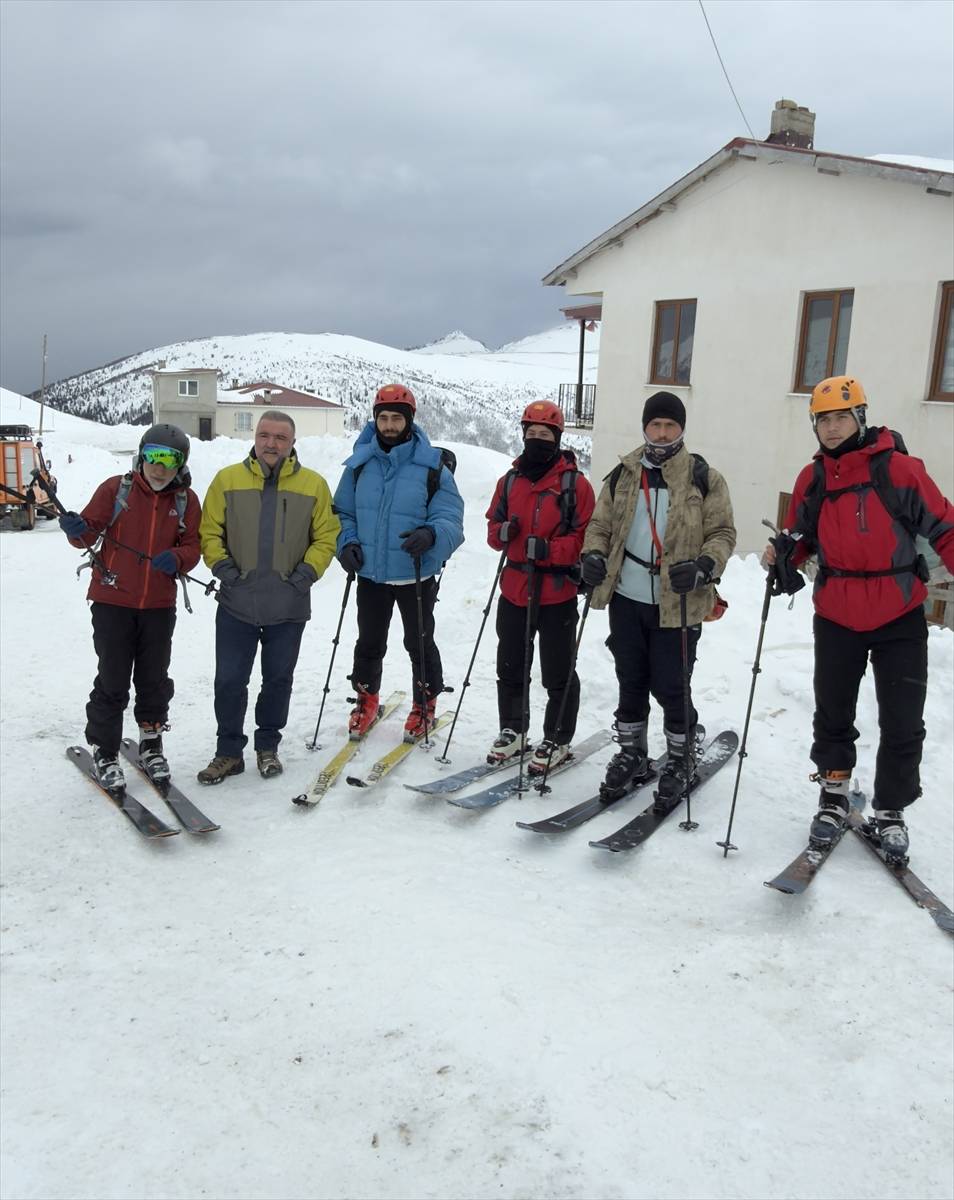 Yaklaşık 2,5 saat süren zorlu tırmanışla zirveye ulaşan sporseverler, karla kaplı sarp yamaçlar ve yüksek eğimli yerlerden kayak yaparak iniş yaptı.