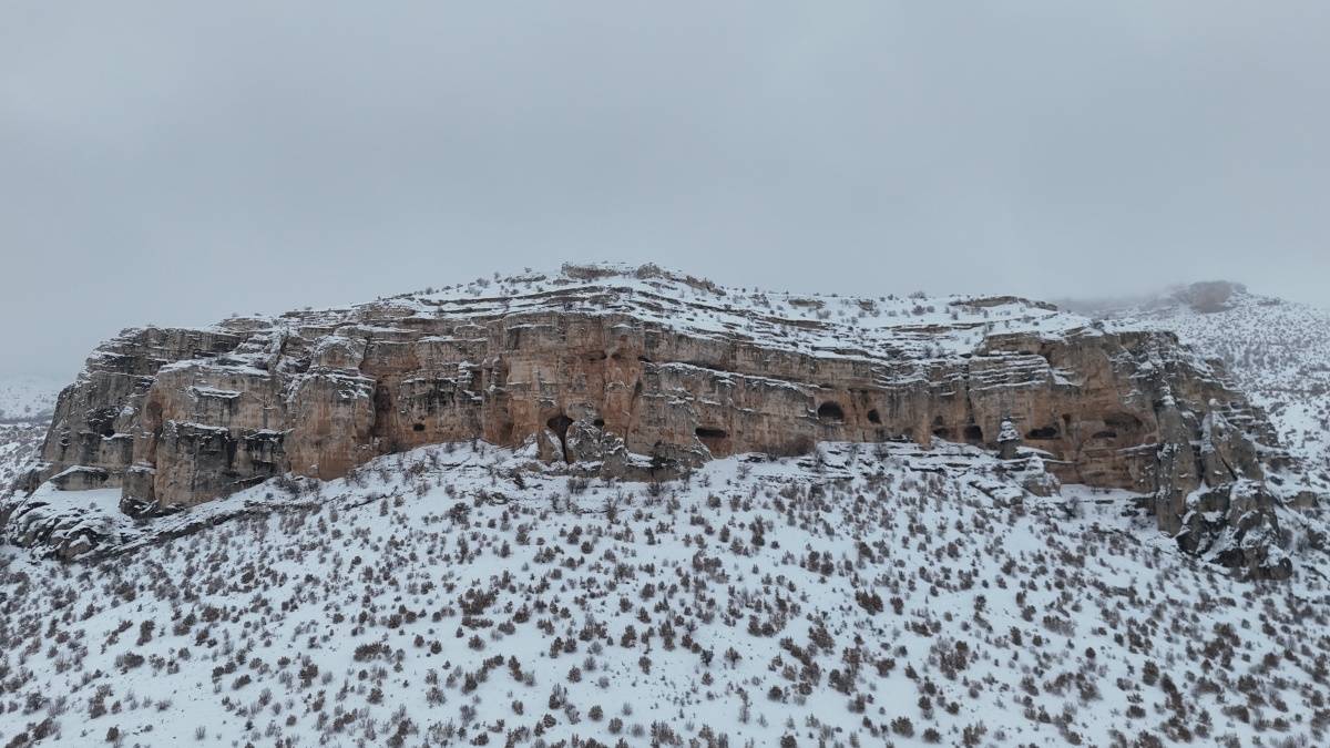 Malatya’nın Akçadağ ilçesinde bulunan ve yaklaşık 65 milyon yıllık jeolojik oluşumuyla dikkat çeken Levent Vadisi, etkili olan kar yağışıyla beyaza büründü.