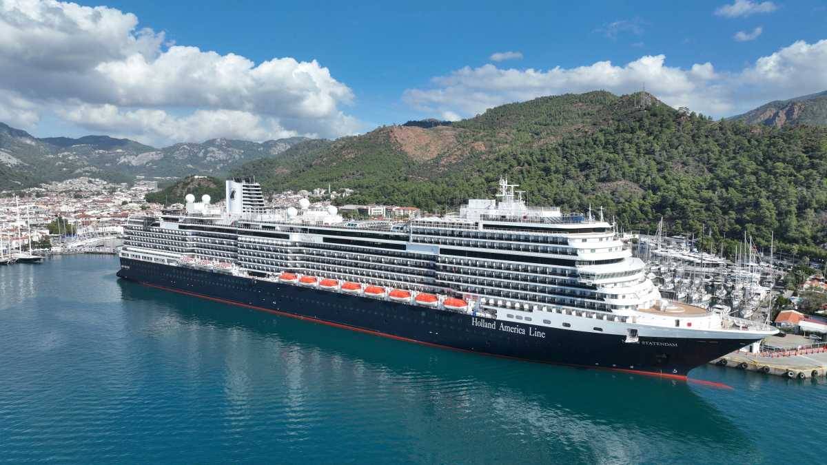 Hollanda bayraklı “MS Nieuw Statendam” isimli kruvaziyer, 2 bin 594 yolcusuyla Muğla’nın Marmaris ilçesine geldi.