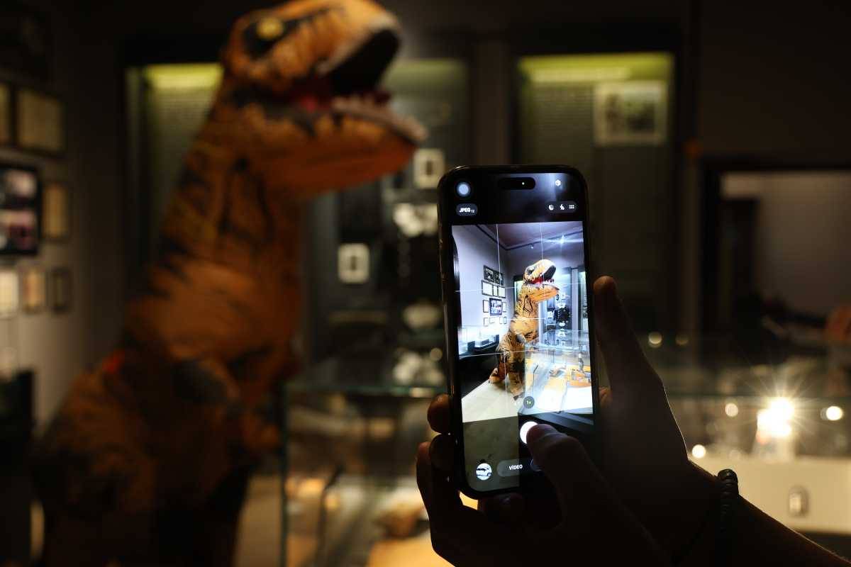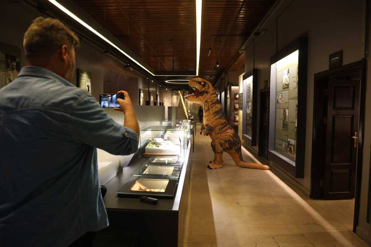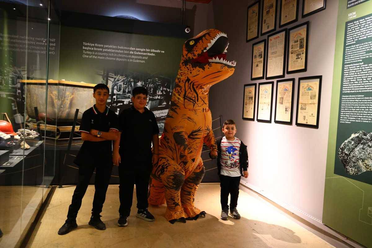 Dinozor kostümü giyen 17 yaşındaki lise öğrencisi Arda Karaboğa, müzeyi gezmeye gelince hem çocukların hem de büyüklerin ilgisini topladı. Müze ziyaretine gelen vatandaşlar, dinozor kostümlü genci görünce şaşkınlıklarını gizleyemedi. Özellikle çocuklar, dinozorla hatıra fotoğrafı çektirip Elazığ yöresine ait alanda halay çekti.