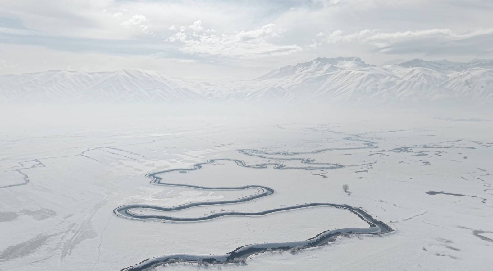 Hakkari’nin Yüksekova ilçesinde yer alan Nehil Deresi’ndeki menderesler beyaz örtüyle kaplandı. Birden fazla köyün içinden geçen ve Zap Suyu ile birleşen dere kısmen buz tuttu.