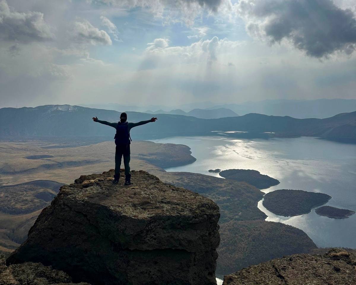 Van Rota Doğa Sporları Kulübü’ne üye dağcılar, Türkiye’nin en büyük krater gölü olan Nemrut Krater Gölü’nün çanak kısmını 360 derece yürüyerek eşsiz manzarayı her yönüyle izledi.