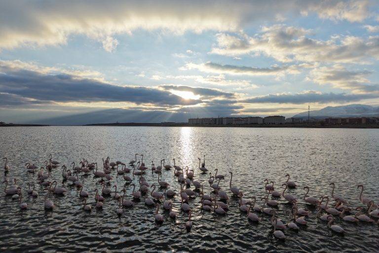 Her yıl olduğu gibi bu yıl da göç rotası üzerindeki önemli duraklardan biri olan Akkaya Barajı’na gelen flamingoların oluşturduğu manzara havadan kaydedildi.