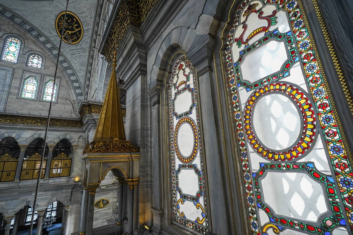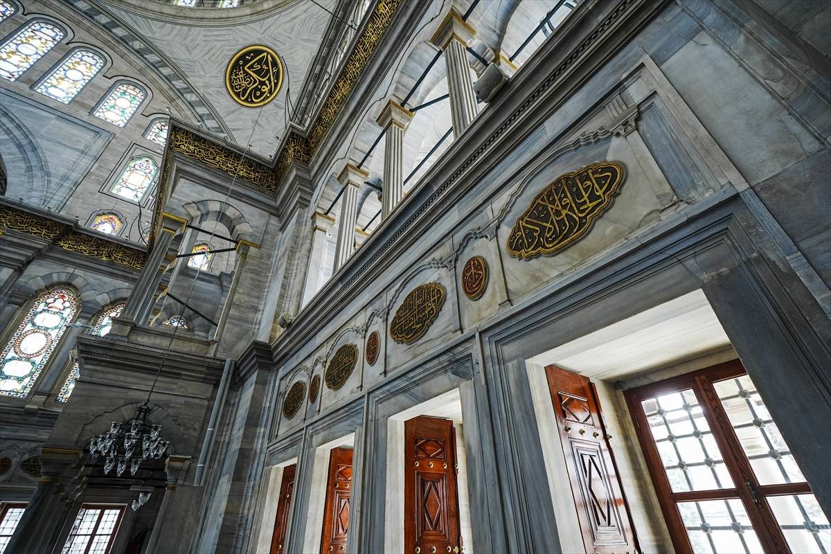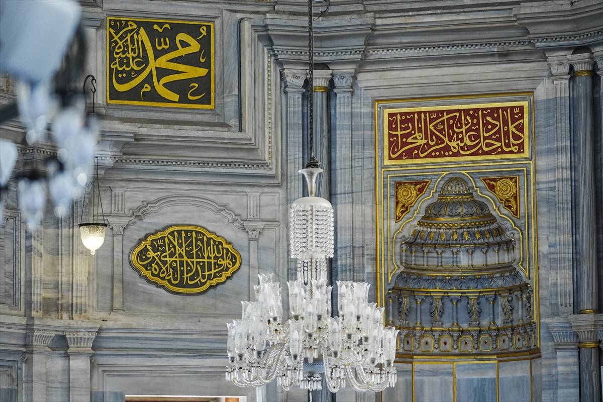 “Bu zengin hat repertuarına sahip olan camide tek bir hattatın da imzası yoktur. Döneminin ve sonraki dönemlerin 6-7 hattatının imzasını görmemiz mümkün. Kuşak yazısının Ahmet Rasim Efendi’ye ait olduğunu biliyoruz. Onun dışında cami, Esma-ül Hüsna madalyonları açısından yine çok zengindir. Allah’ın güzel isimleri anlamına gelen Esma-ül Hüsna’nın her biri yeşil madalyonlar şeklinde camiyi kuşatmaktadır. Bu camiye mahsus bir diğer tezyini özellik olarak şunu vurgulamamız mümkün. Esma-ül Hüsna’ların arasına Esma-ül Nebi dediğimiz Efendimiz’e ait isim ve sıfatların yerleştirilmiş olmasıdır. Bu da diğer camilerde çok görülen bir uygulama değildir. Burada Efendimiz’in Ahmet, Mahmud, Siraç, Burhan gibi hem isimleri hem de Kur’an-ı Kerim’de onu niteleyen sıfatların birer hat madalyonu olarak yer aldığını söyleyebiliriz. Onun dışında çeşitli padişahların tuğraları yine bu camide mevcuttur. Tuğraların birinde hattat Mustafa Rakım’ın imzası vardır ki Osmanlı döneminin en ünlü hattatlarından biridir.”