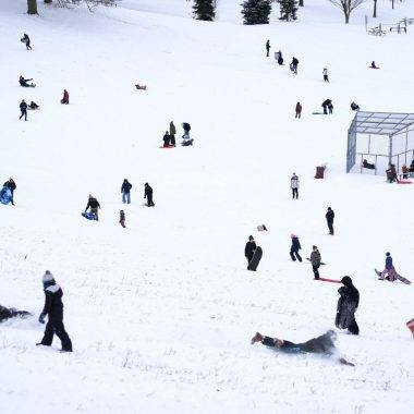 Toronto’da kar yağışı parklarda eğlenceye dönüştü