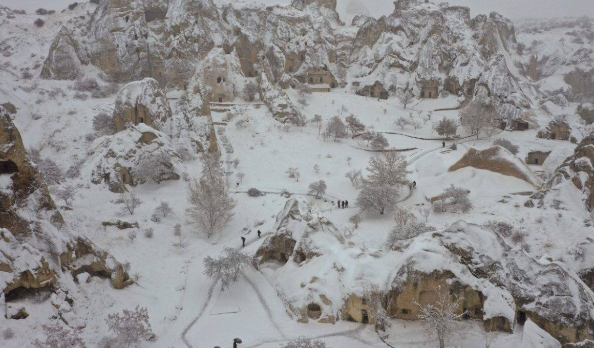 Peribacaları beyaza büründü! Turistler karın keyfini yaşadı