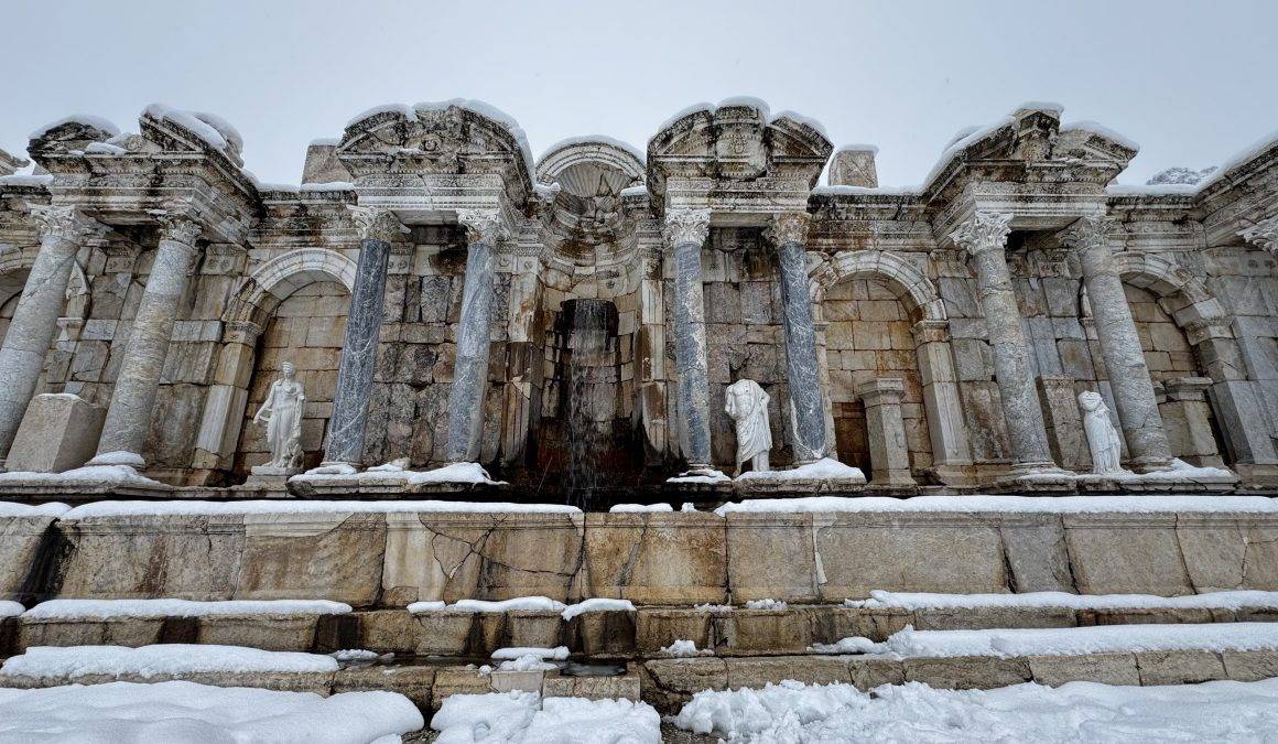 Hadrian Çeşmesi’nin büyüsü! “Aşkların ve imparatorların şehri” beyaza büründü
