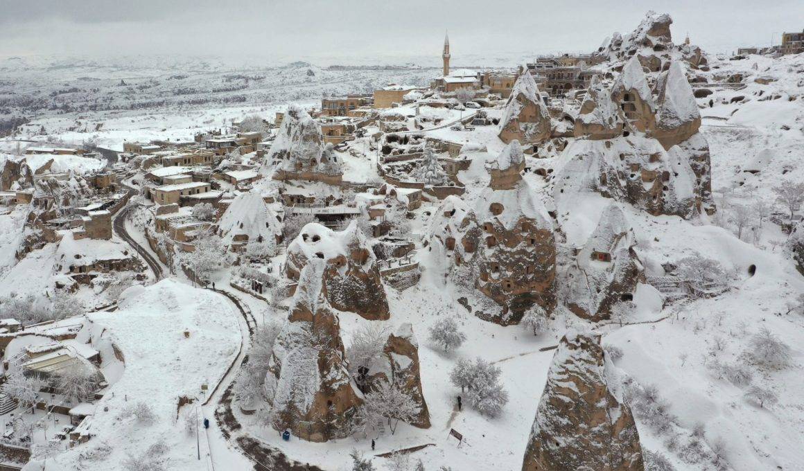 Turistlerin gözdesi Kapadokya beyaza büründü