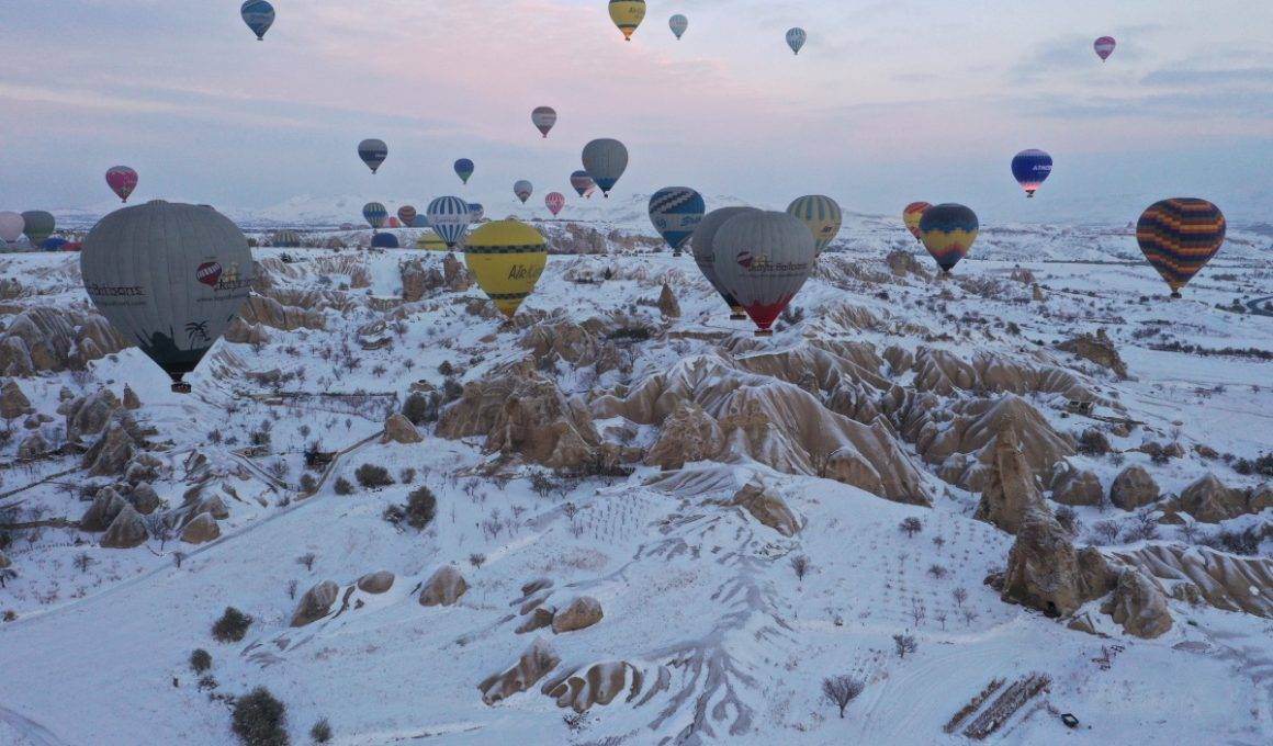 Balonlar yeniden havalandı: Kapadokya’dan kar manzaraları