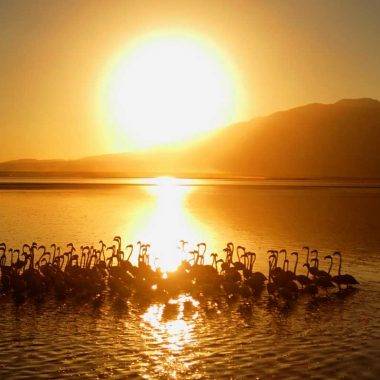 Van Gölü sahillerinden enfes manzaralar: Flamingoların güneşle dansı