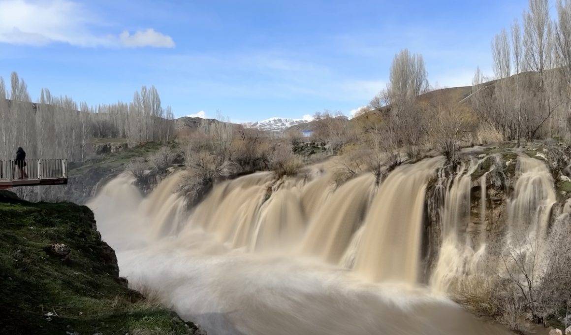 Muradiye Şelalesi karların erimesiyle birlikte coştu