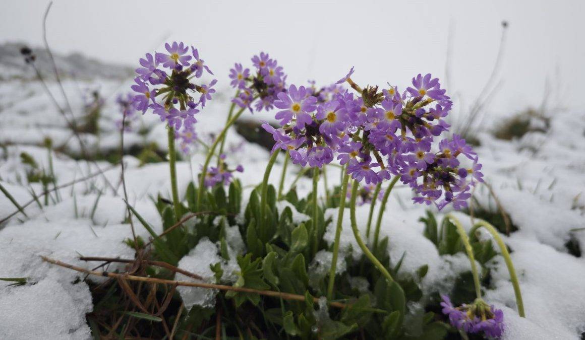 Kar altında kalan çiçeklerin ahengi göz kamaştırıyor