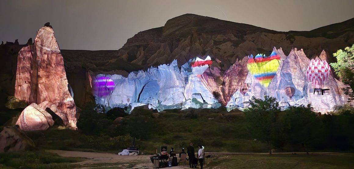 Kapadokya’nın tarihi 3D mapping teknolojisiyle peribacalarına yansıtıldı