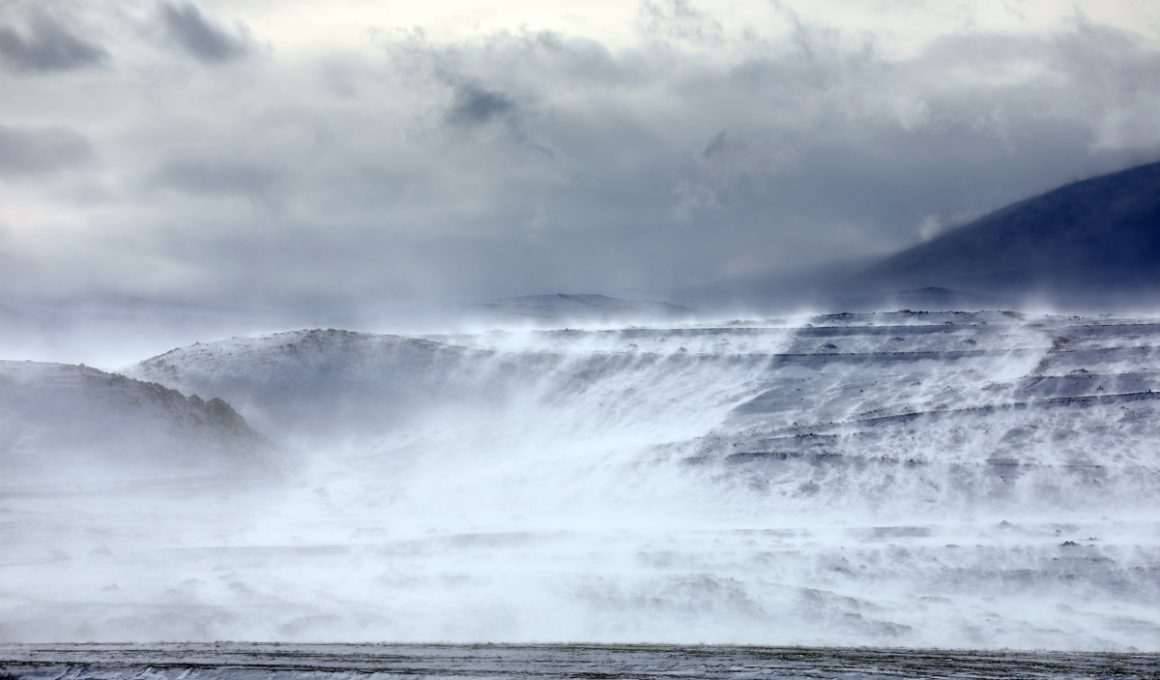 Fırtına Aras Dağları’nda kar şelalesi oluşturdu