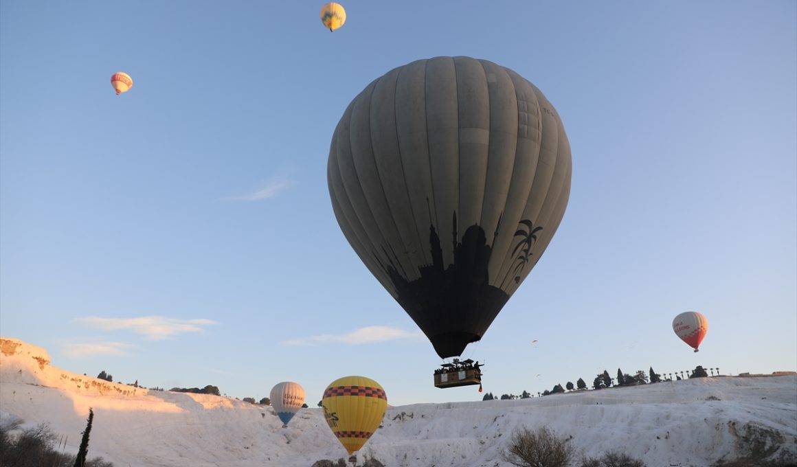 Pamukkale’de travertenler ve balonlar aynı karede!