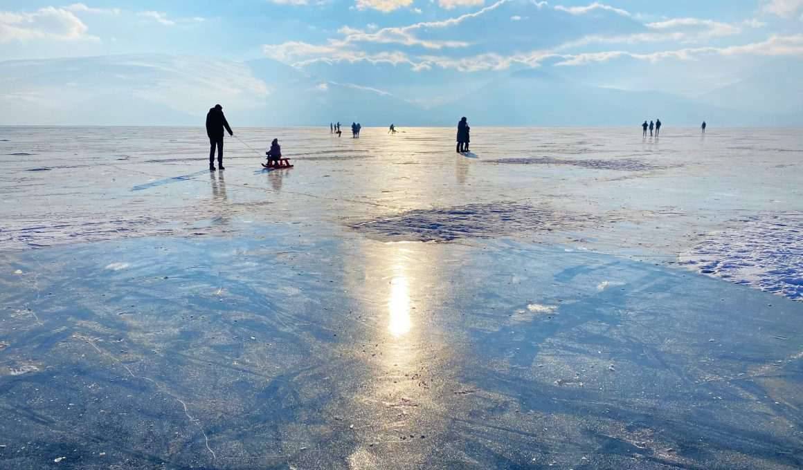 Turistler buz tutan Çıldır Gölü’nde eğlenceli vakit geçiriyor