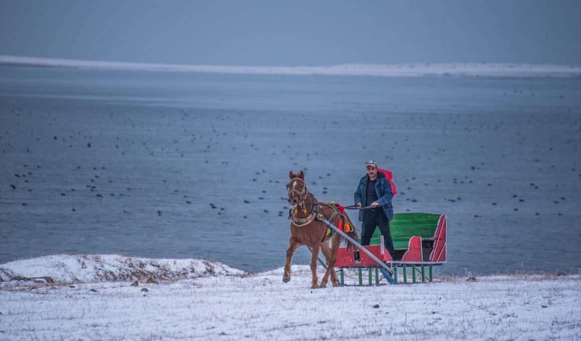Atlı kızakçılar Çıldır Gölü’nde kış turizmine hazırlanıyor