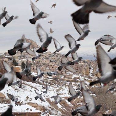 Kapadokya’da masalsı manzara: Peribacaları beyaza büründü