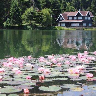 Dört mevsim ayrı güzel! Göl çevresi çiçeklerle kaplandı