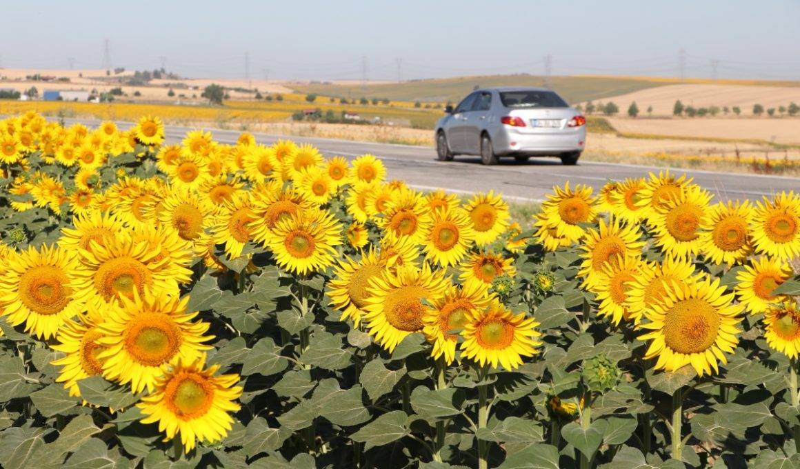 Tekirdağ’ın uçsuz bucaksız ”günebakan” tarlaları sürücüleri adeta büyülüyor