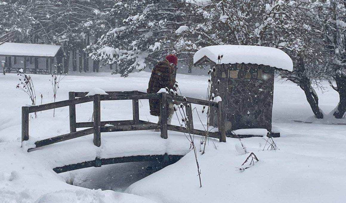 Gözde mesire alanı nisan ayında kar güzelliğiyle büyülüyor