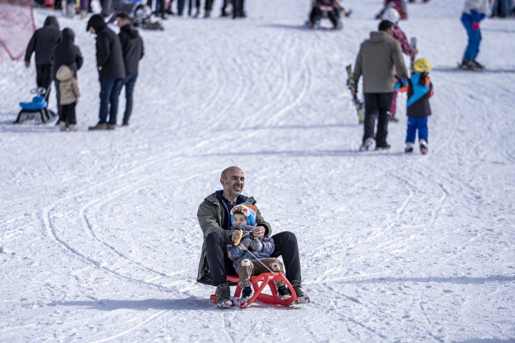 Kar kalınlığının 278 santimetre ölçüldüğü merkezde, aileler çocuklarıyla kızağa bindi, yerli ve yabancı turistler kayak ile snowboard yaparak eğlenceli vakit geçirdi.