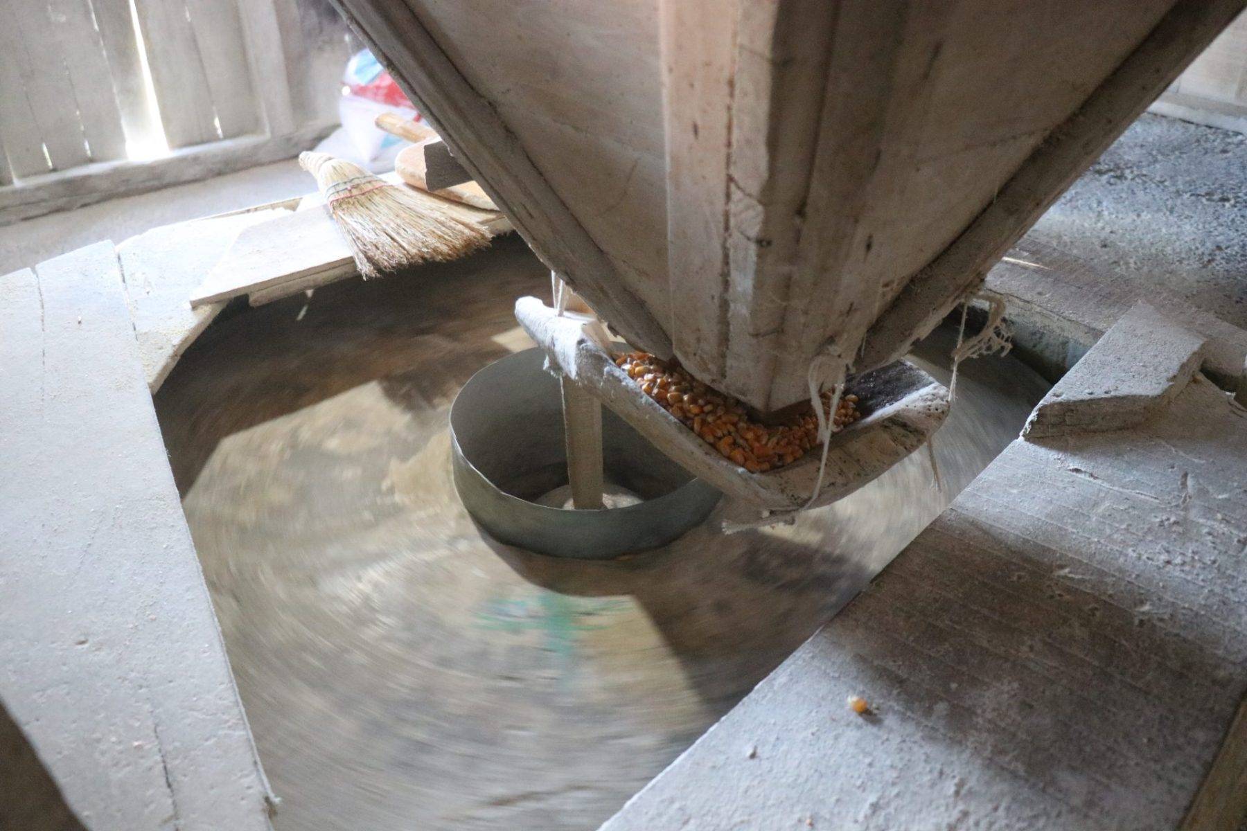 Değirmendere Mahallesi’nde bulunan tarihi yapıda, 3 kilometre mesafeden su kanallarıyla getirilen suyun gücüyle dönen dev taşların arasında mısır ve buğday geleneksel yöntemlerle öğütülüyor.