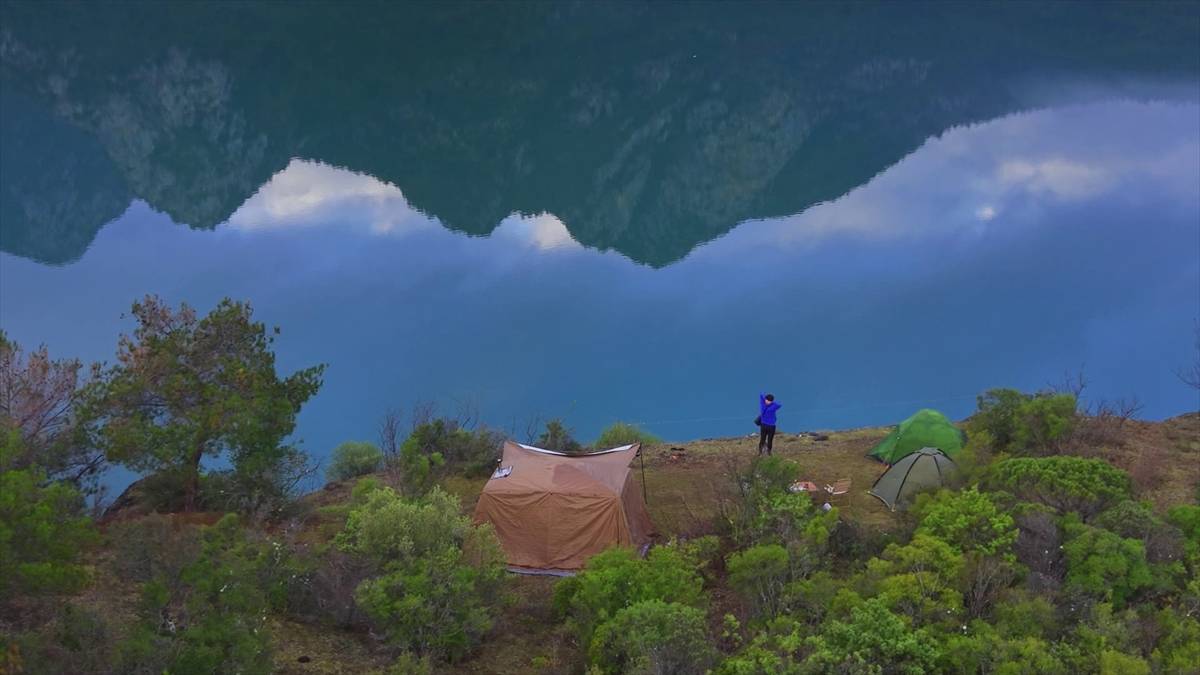 Kızılırmak Nehri üzerindeki Altınkaya Barajı’nın ikinci kanyonu olan Kaplancık Kanyonu’nda bazı doğaseverler kanyon üzerindeki adalarda çadır kurarak kamp yapıyor.
