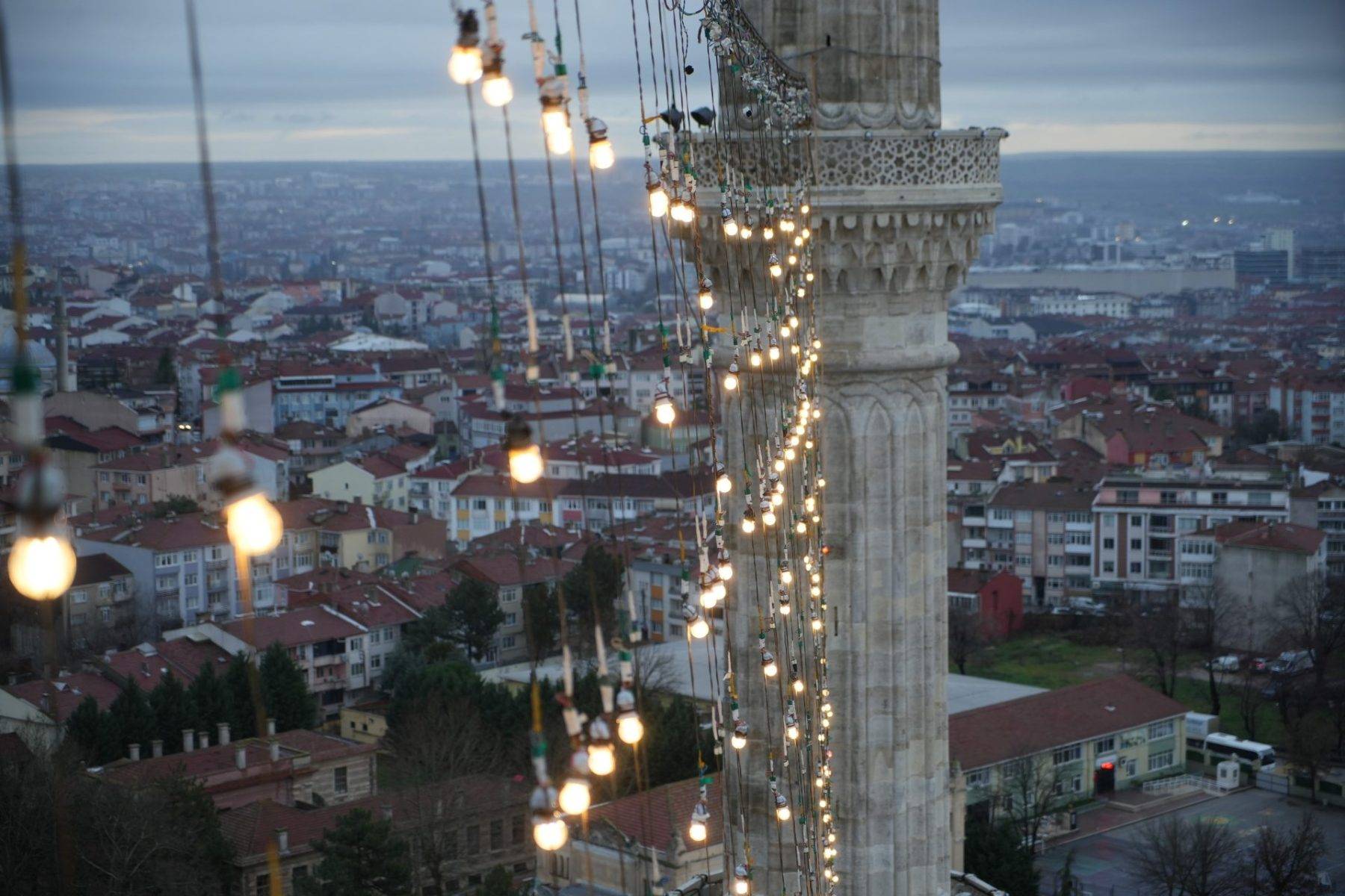 Selimiye Camii’nin minareleri, Ramazan ayının gelişiyle birlikte mahya ile süslendi.