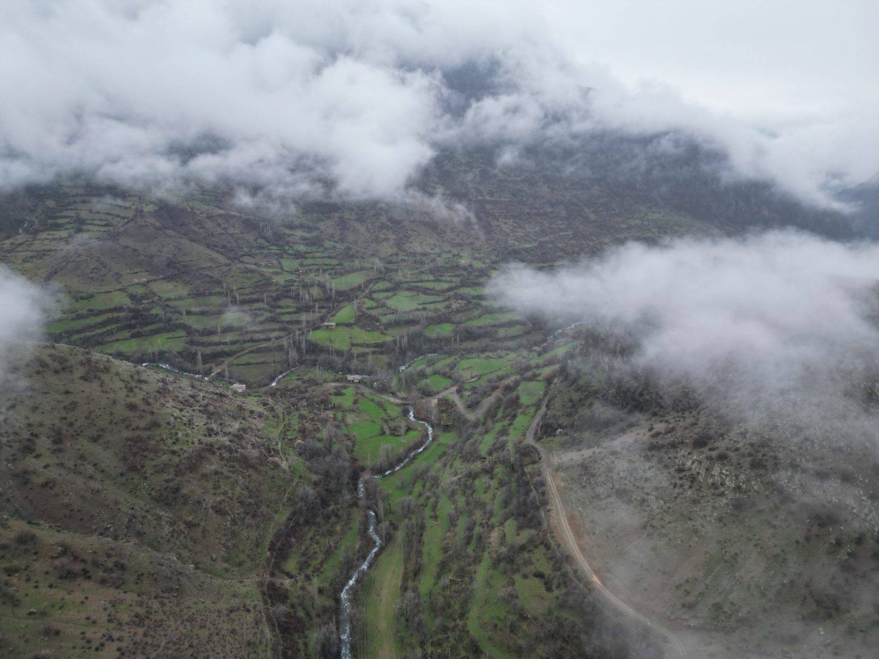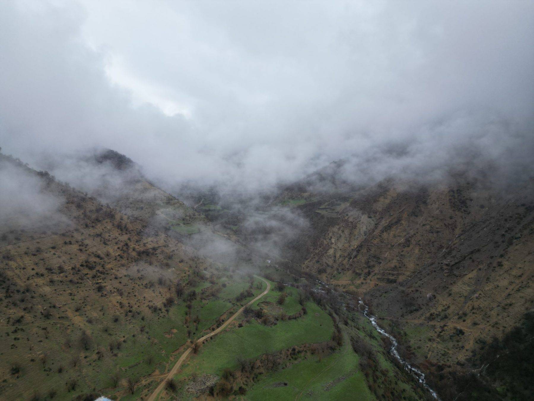 Bölgede etkili olan yağışın ardından kanyon ve üzerinde oluşan bulutlar dronla kayda alındı.
