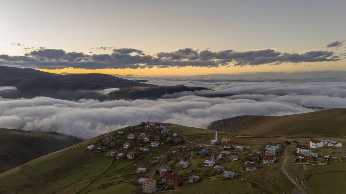 Trabzon’un Çaykara ilçesindeki Sultan Murat Yaylası, sis sonucu oluşan manzarasıyla ziyaretçilerine ev sahipliği yapıyor.