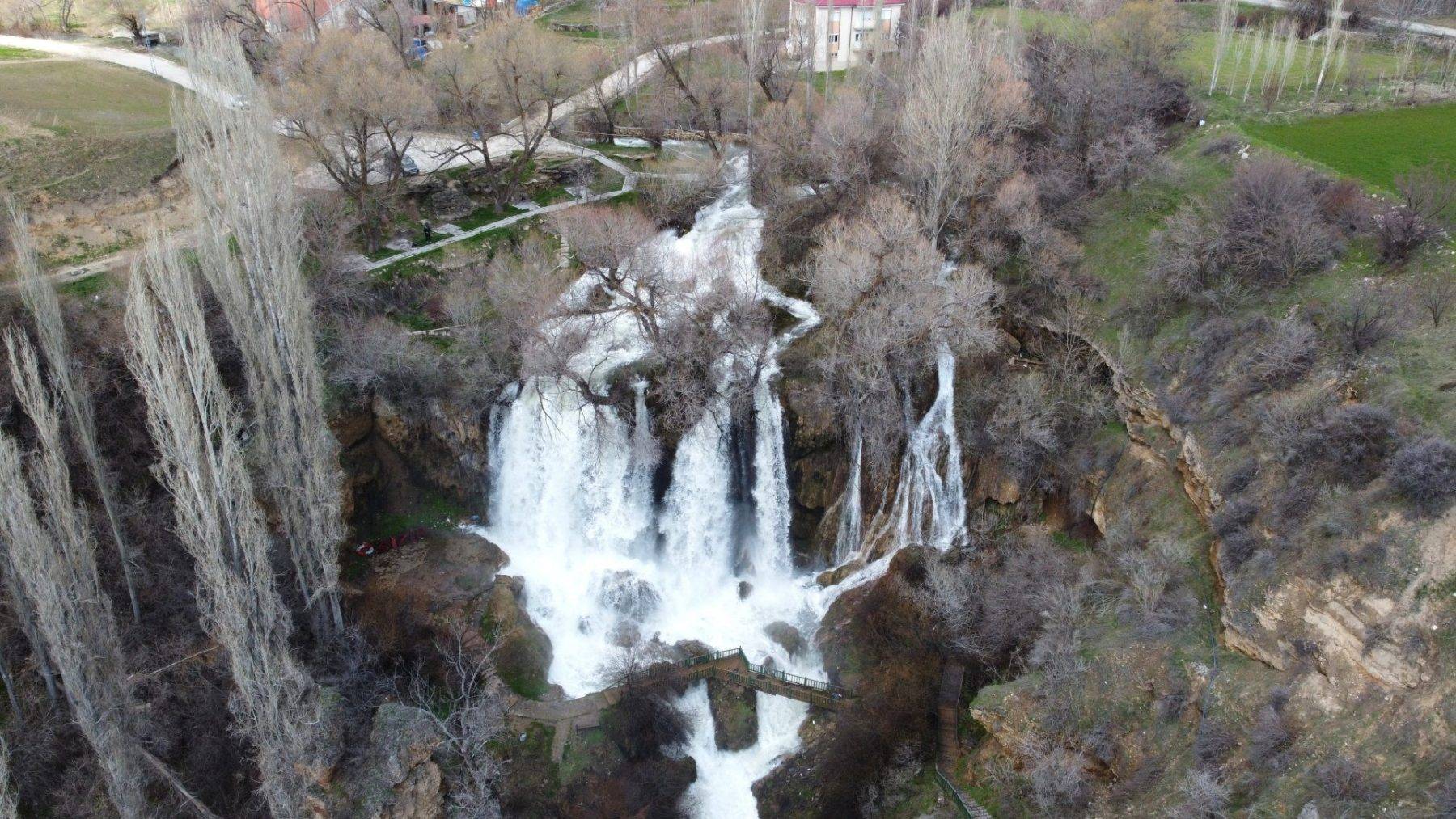 Sivas’ın Gemerek ilçesine bağlı Sızır beldesinde bulunan Sızır Şelalesi, kış aylarında yağan karların erimesi ve bahar yağışlarının etkisiyle son yılların en yüksek debili günlerini yaşıyor.