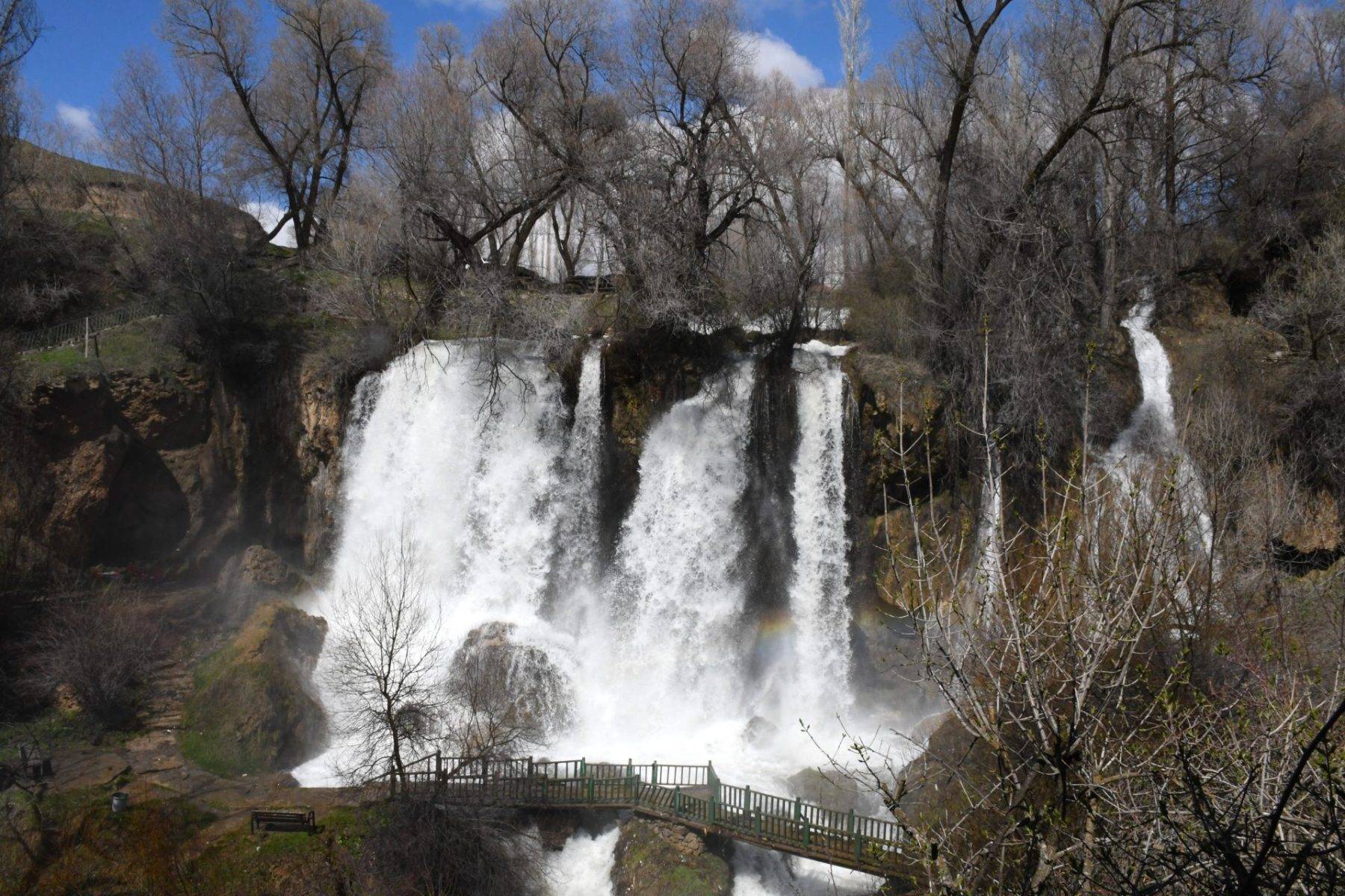 Öte yandan suyun yoğun akışı nedeniyle bölgede güvenlik önlemleri de artırıldı. Jandarma ekipleri, şelalenin alt kısmına inilen yürüyüş yolunun tehlike oluşturabileceği gerekçesiyle bölgeye şerit çekerek ziyaretçilerin aşağıya inmesine izin vermiyor.