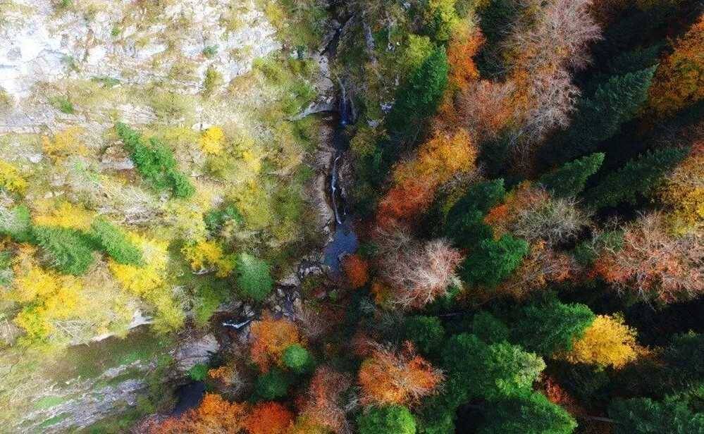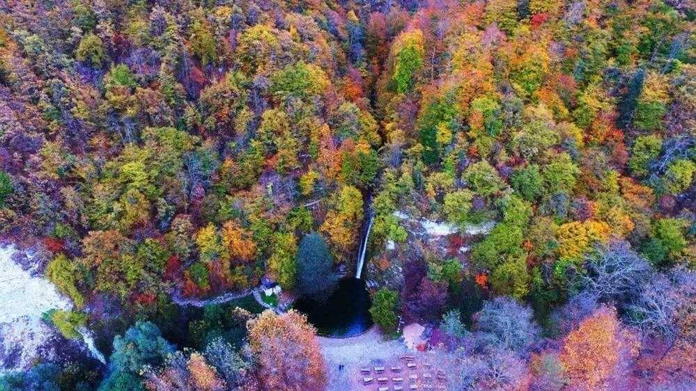 Sonbaharda ayrı güzel! Rengarenk doğada akan şelale