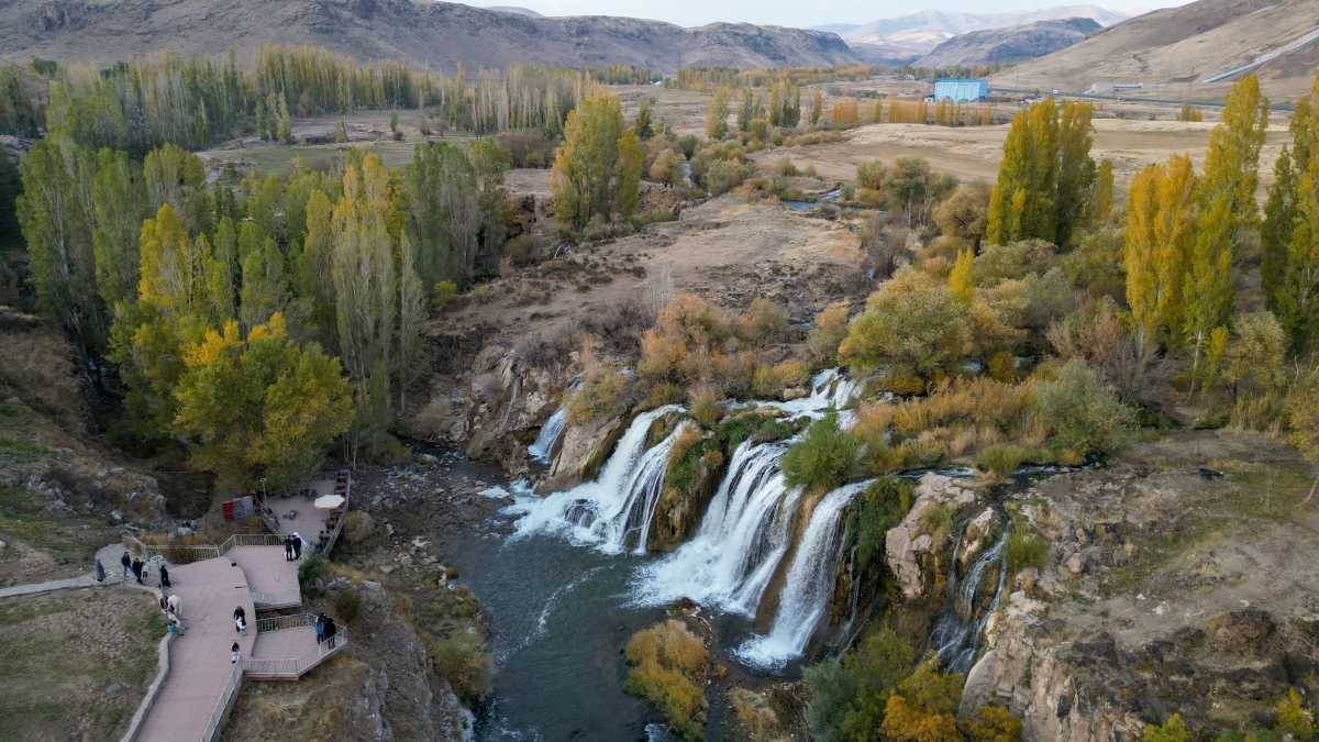 Van’ın doğal güzelliklerinden Muradiye Şelalesi, sonbahar renklerinin bir arada görülebildiği doğasıyla ziyaretçilerine ev sahipliği yapıyor.