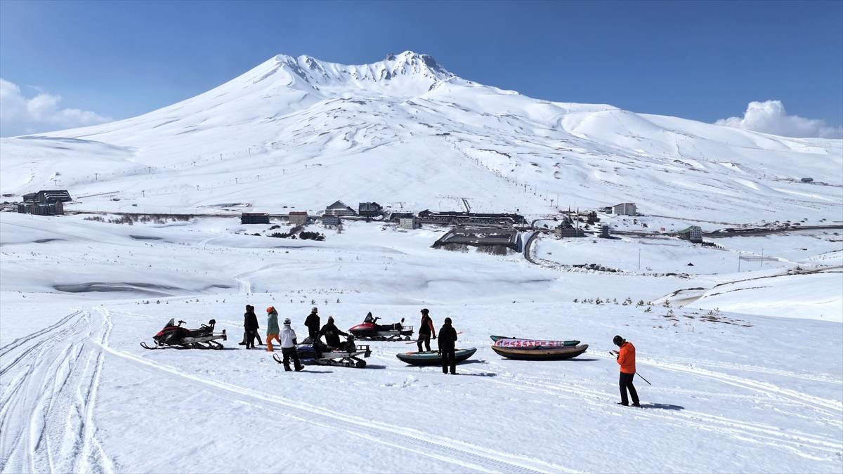 Zamantı Kano ekibi, Tomarza ilçesinde ağaçların arasından akan Zamantı Irmağı’nda yaptıkları kanoyu, bu sefer Türkiye’nin en önemli kış sporları ve turizm merkezlerinden Erciyes Dağı’nın zirvesine taşıdı.