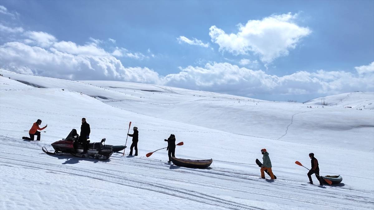 Ekip üyesi Cengizhan Yolcu da uzun zamandır suda yaptıkları kanoyu kar üzerinde deneyimlemenin çok güzel duygu olduğunu dile getirdi.