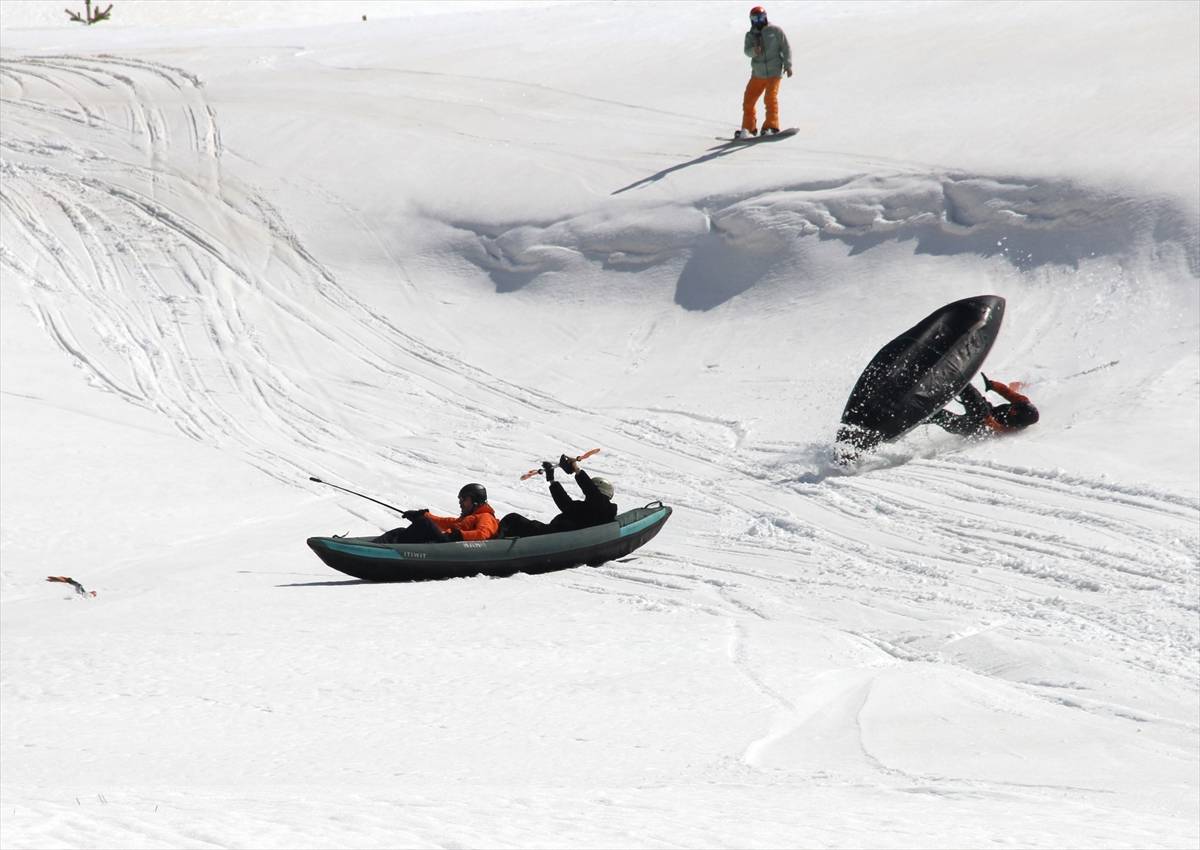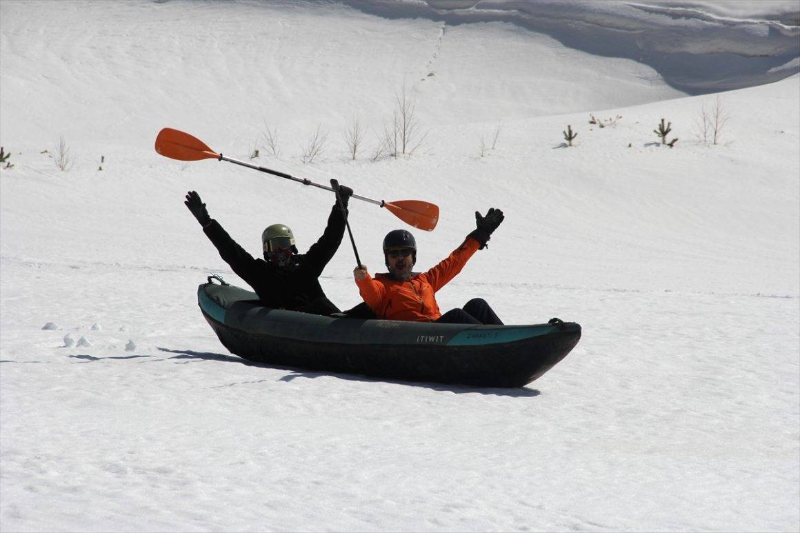 Katkıda bulunanlara teşekkür eden Köse, “Bütün güvenlik önlemlerimizi alarak pist dışı yerde bu etkinliği yaptık. 6 arkadaş burada hazırlandık. 3 kano ve 2 snowboardla ortaya güzel aktivite çıkardık. Bu kadar eğlenceli olacağını hiç düşünmedik ama gerçekten karın üzerinde de kano yapılıyormuş. Bunu da ispatlamış olduk.” şeklinde devam etti.