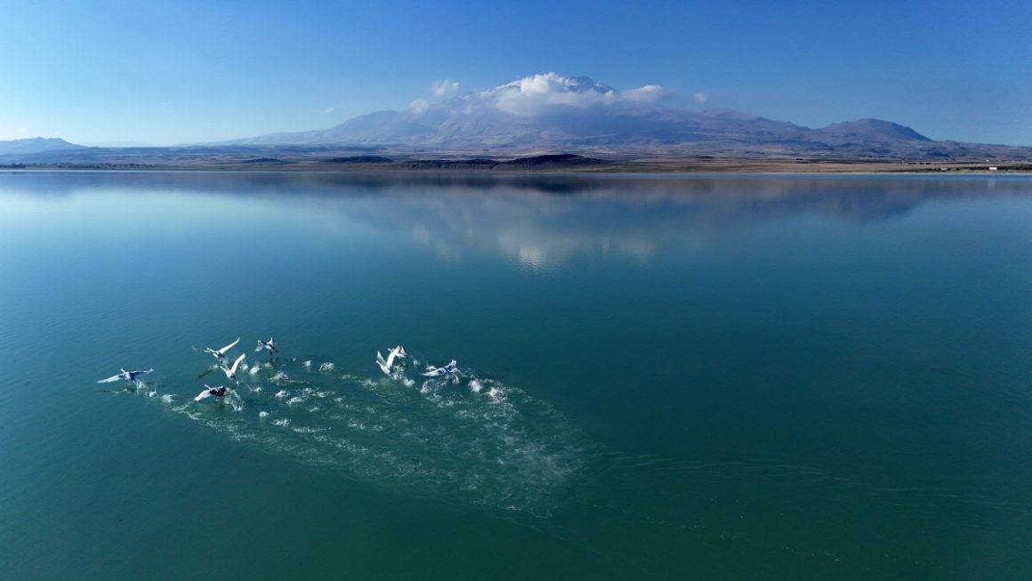 Süphan Dağı ile birleşen manzara! Kuğuların zarafetiyle süslendi