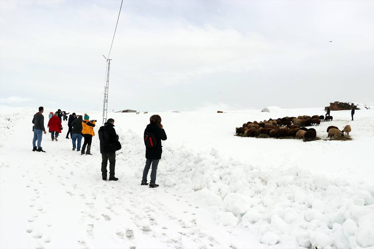 Bursa, İstanbul, Mersin gibi illerden grup halinde kente gelen fotoğraf tutkunları, kış koşullarının yaşamı zorlaştırdığı köylerde kar üstünde hayvanlarını besleyen vatandaşları da kadrajlarına yansıtıyor.