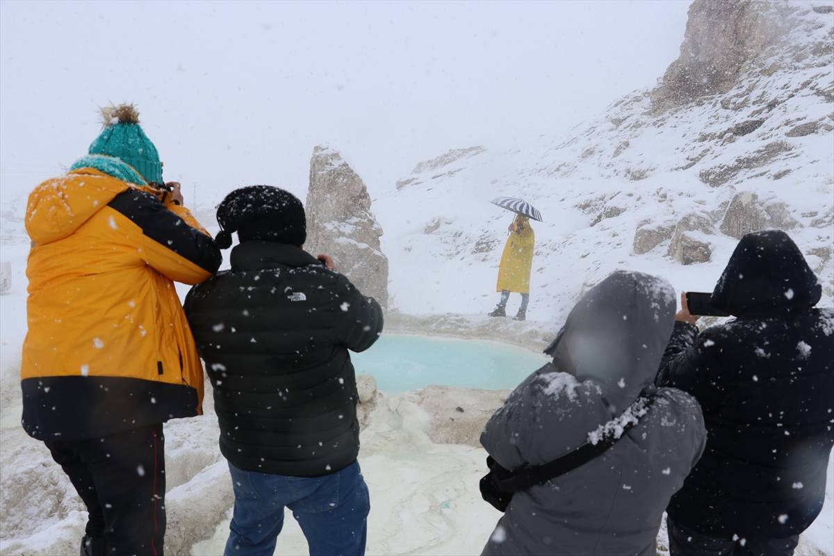 “Burada çetin kış koşulları var. Diyadin Kaplıcaları’nda muhteşem görüntü var. Bu doğal güzelliğin saklı kalmasını istemediğim için gittiğim her yerde tanıtma arzusu içerisindeyim. Kaplıca suyu turkuaz rengiyle muhteşem güzellik sunuyor, su çok sıcak, kar altında bu sıcaklığı hissetmek bambaşka duygu.”